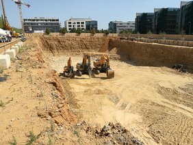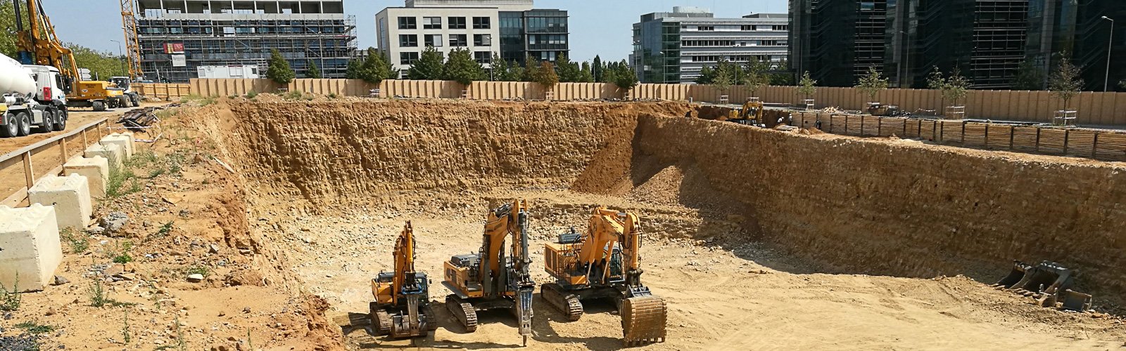 Im Zuge der Erdarbeiten begleitet WPW die Baugrubenherstellung und die Herstellung des Kopfverbaus. Des Weiteren sorgt WPW für die fachtechnische Begleitung der Verbauherstellung und plant die Dränage der Gebäude.