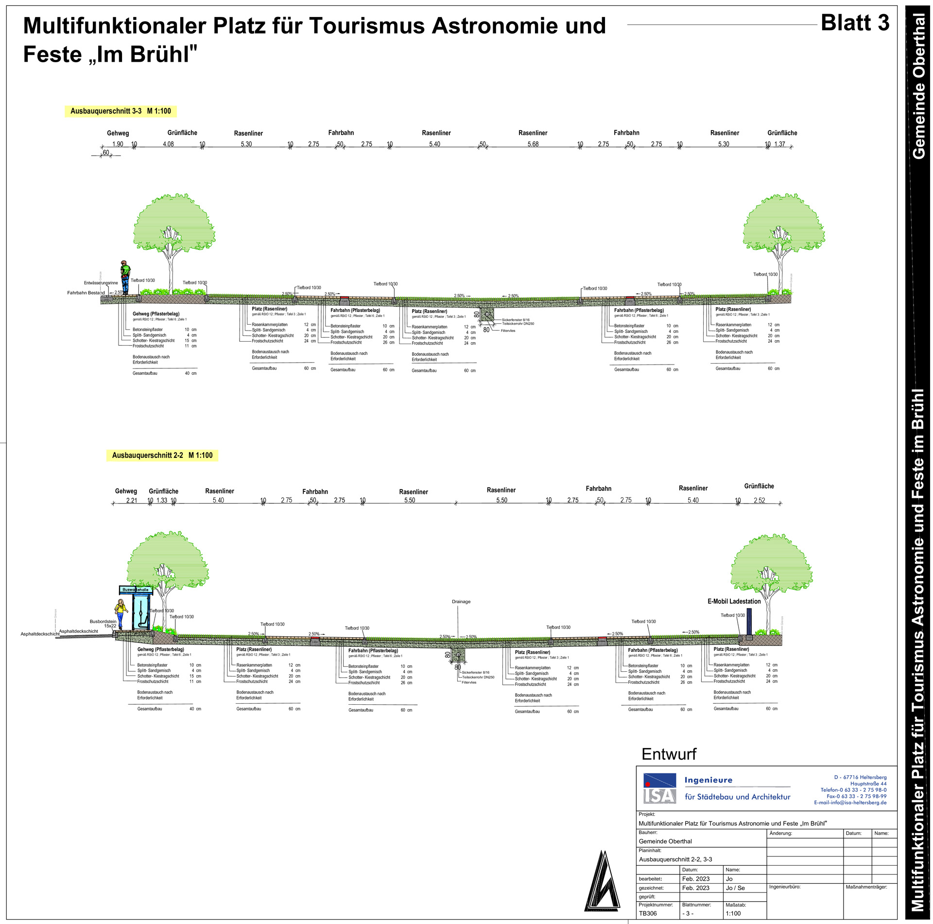 Den Platz umgibt ein Gehölzsaum aus Bienen- und Vogelnährgehölzen. An der Grenze zur umgebenden Bebauung befinden sich insgesamt 18 Planetenbäume und entlang der Straße sind besonders klimaresiliente Bäume vorgesehen. Die Platzeinfahrt wird durch den farblich markanten Rot-Ahorn betont. In den Bäumen werden Nistkästen angebracht und an Meteoriten erinnernde Findlinge dienen beispielsweise Eidechsen als Habitat. Der beigefügte Lageplan der iSA Ingenieure zeigt die Gesamtkonzeption sehr anschaulich.